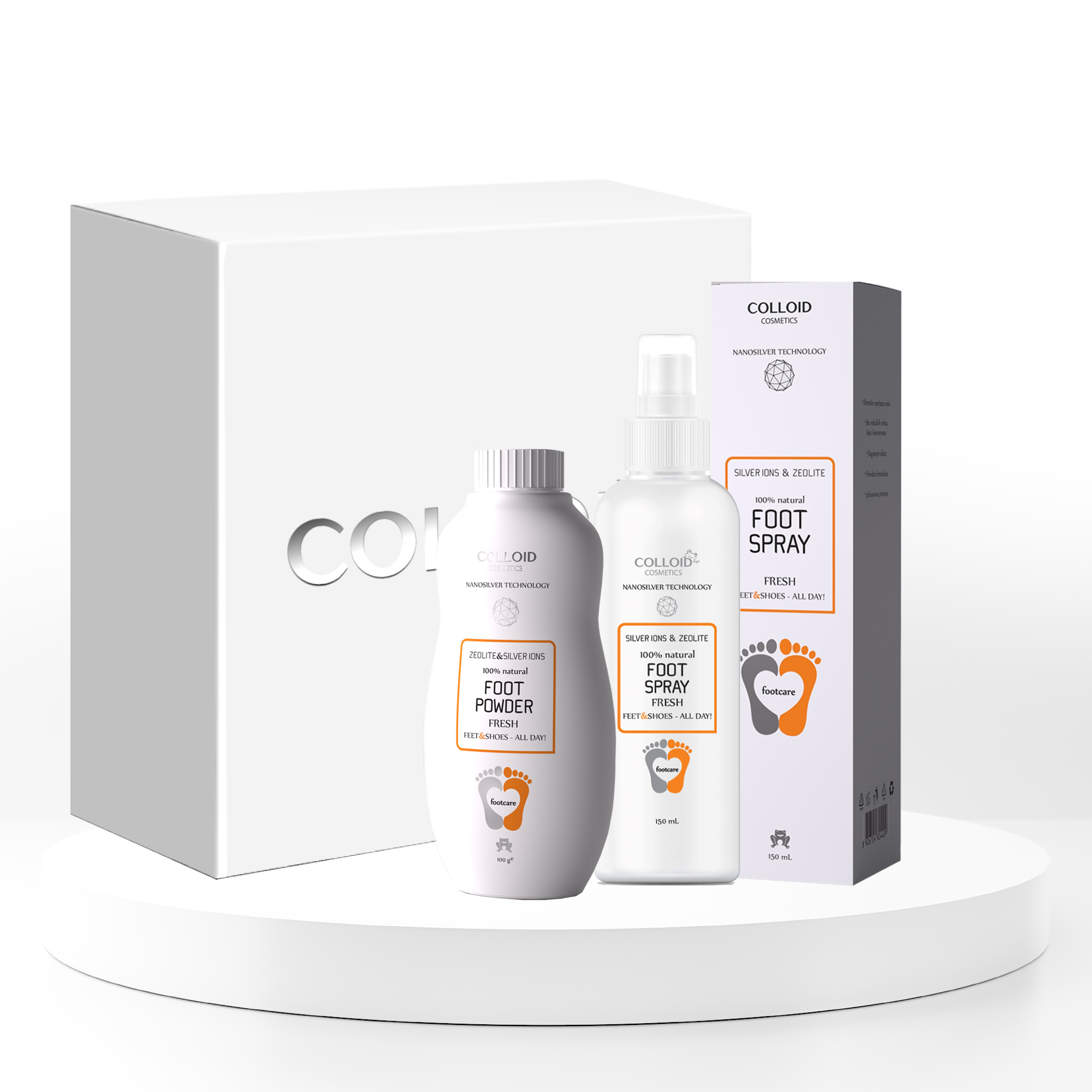 Multifunctional, natural preparation for foot skin care, thanks to powerful, natural ingredients, enables effective hygiene and foot skin care, which leads to immediate elimination of itching, suppression of health problems of foot skin and nails, disappearance of unpleasant odor and reduced sweating. The ingredients of the preparation hydrate the skin, provide 24-hour protection, care for dry and damaged skin, making it smooth and healthy. It is recommended for people with athlete’s foot and fungal infections of the feet and nails, athletes, recreational people and others who spend a lot of time standing. It is gentle on sensitive skin. The four-component formula, with a combination of zeolite, silver ions and silver nanoparticles, destroys fungi and bacteria and prevents unpleasant foot and shoe odors. Eucalyptus essential oil has anti-inflammatory, antibacterial and analgesic effects. Glycerin hydrates the skin, making it elastic and protects it from external influences.